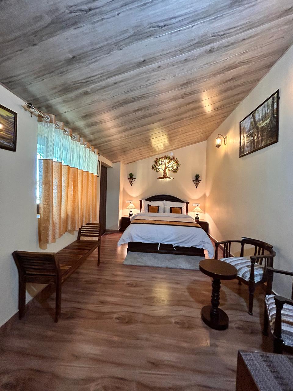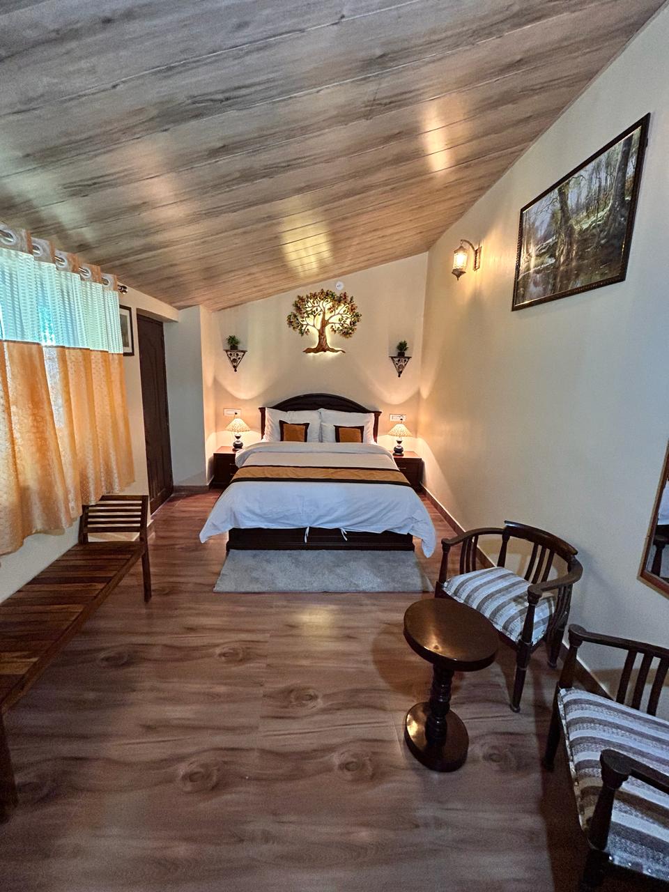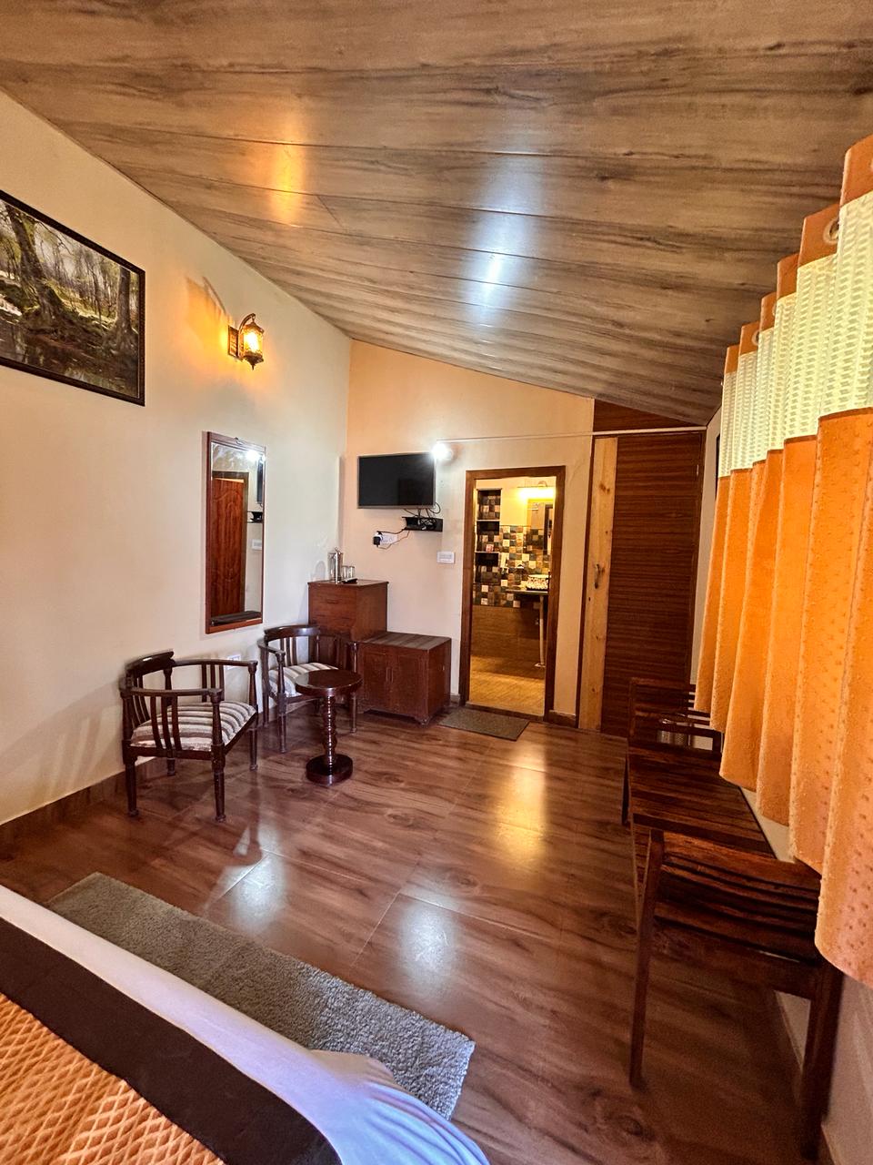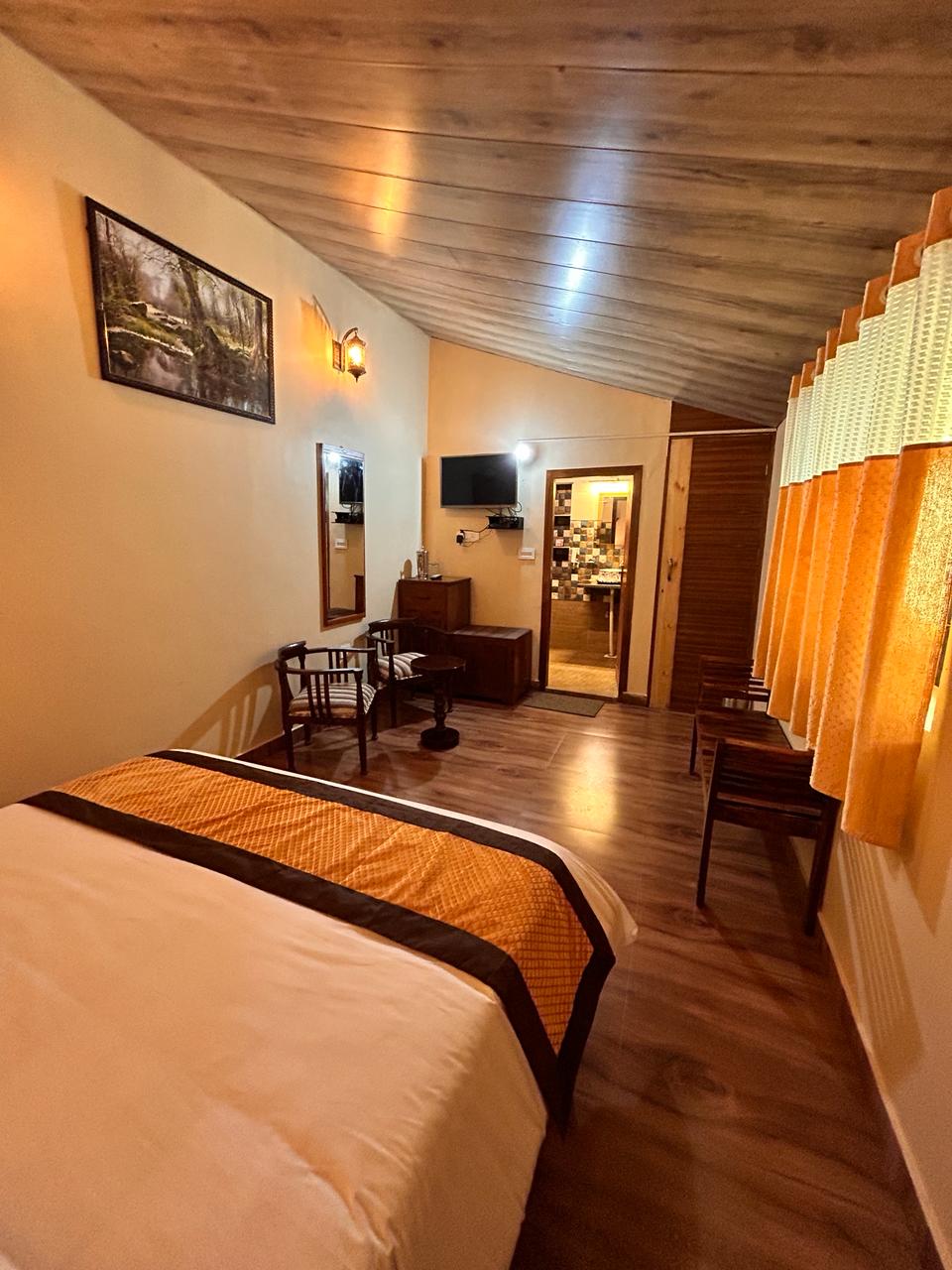 Features - Private entrance - Bedroom with Queen size bed - Ensuite washroom with geyser - Cupboard - Television - Forest view -Yard and outdoor seating area near cottages